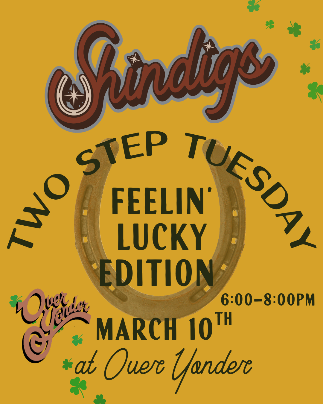 Come out on Tuesday March 10th to Over Yonder (2424 Abercorn connected to Moodrights) for FREE beginner Texas two step and country line dance lessons! Great food, drinks, dancing and people! No partner needed! Guys, learn how to lead while having a good ol’ time!
